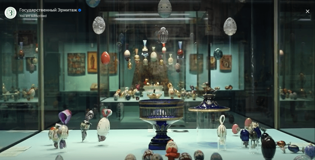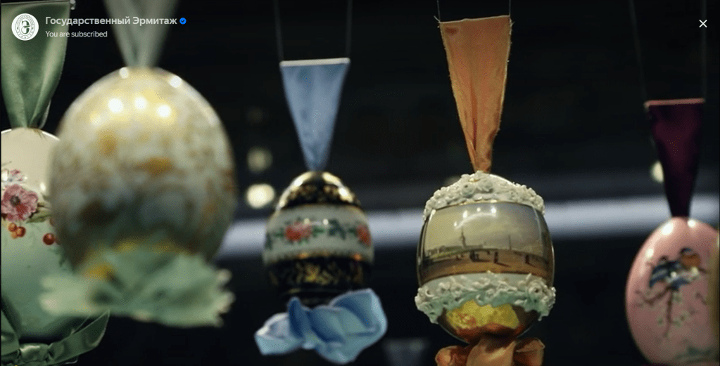 Observez les artefacts de Pâques à l’Ermitage. Même si la vidéo n’est pas en Français, elle est superbe et vaut la peine d’être regardée.