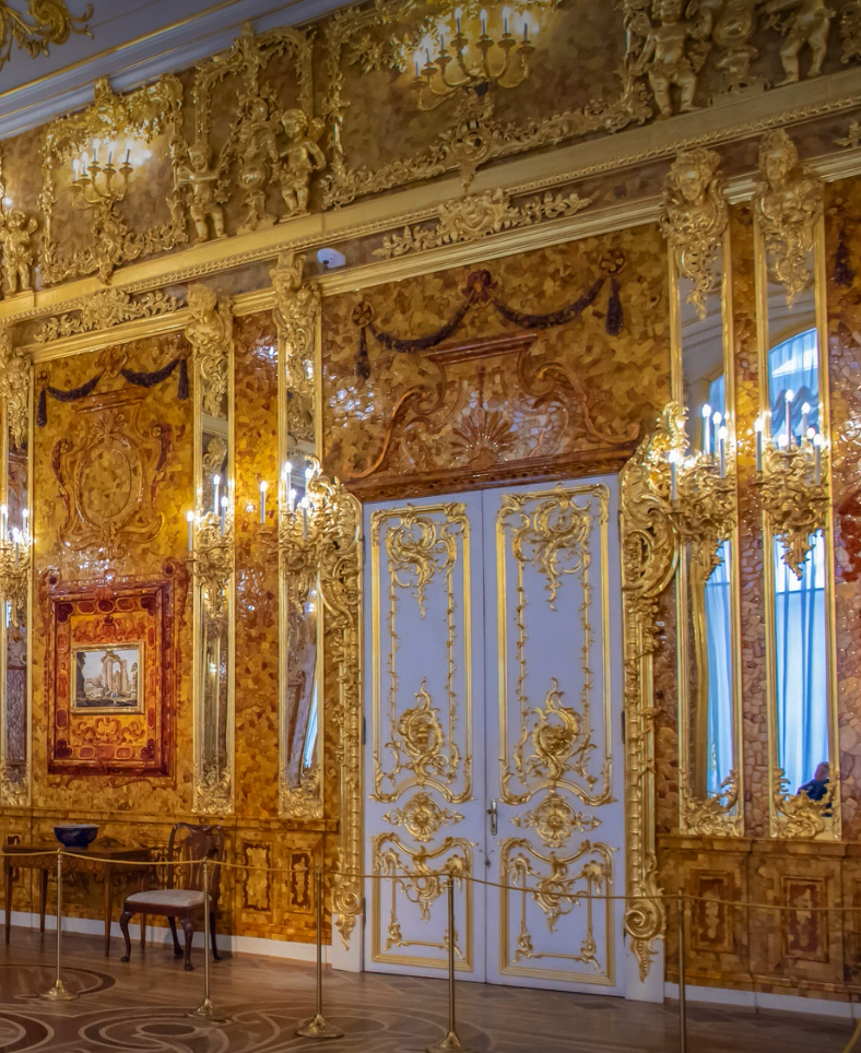 La chambre d’Ambre est un célèbre chef-d’oeuvre de l’art du XVIII, qui a disparu sans laisser de trace pendant la seconde guerre mondiale.