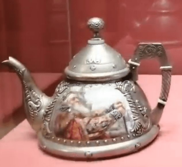 J’ai trouvé une vidéo très courte et agréable d’émail de Moscou à l’exposition Fabergé. J’aurais souhaité de la musique mais il y a des explications en russe pour ceux qui la comprennent. J’ai mis quelques photos de la vidéo et un lien pour que vous puissiez la regarder vous-même et j’espère l’apprécier autant que moi. Le signe montré à la fin de la vidéo dit: Service à thé et café O. Kurlyukov’s compagnie. Moscou. 1908-1917 . Argent, émail, nacre; monnayage, peinture, dorure.