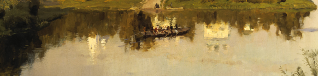 « Les plans spatiaux du tableau sont présentés comme trois mondes différents. Le plus proche est un haut talus couvert d’ombre, d’où l’artiste regarde autour de lui. De l’autre côté du fleuve, naissant d’un jeu de mirages de reflets, dans les rayons du soleil couchant, une vision merveilleuse apparaît – un monastère. Enfin, le regard s’élève vers le ciel en suivant les nuages qui se fondent dans une douce lueur dorée. L’artiste transmet le désir de l’âme à ce monde enchanté de lumières et de sons qui disparaissent dans le lointain. Interrompant le mouvement vers le ciel avec des rythmes transversaux – la ligne du rivage, des ponts, un bateau, il crée le sentiment d’une image insaisissable. Dans cette distance séduisante, on ne peut que s’efforcer sans fin et langoureusement dans les rêves.