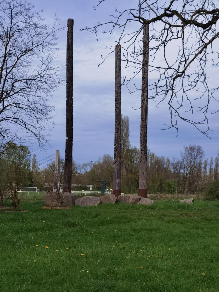 Chers lecteurs et abonnés, cette semaine, j’ai décidé de prendre du recul ! Au lieu d’écrire, je vais partager de jolies photos d’une courte promenade le long de la rivière Ill. C’est une belle balade, et j’ai été agréablement surprise de découvrir trois grands totems et un plus petit au bord de la rivière. Il est fascinant de considérer l’origine possible du nom Alsace de cette même rivière, ajoutant une couche d’intrigue historique aux environs sereins. Il y a tellement d’histoire fascinante à explorer. Pour l’instant, je fais une pause sur le site pour enfin visiter la ville époustouflante et historiquement riche de Strasbourg. J’espère que vous vous joindrez à moi pour ces débuts de vacances d’été et ce voyage de découverte. Nos publications continueront, mais à un rythme plus lent – environ une fois par mois. Cependant, je continuerai à partager mes poèmes comme d’habitude chaque semaine.