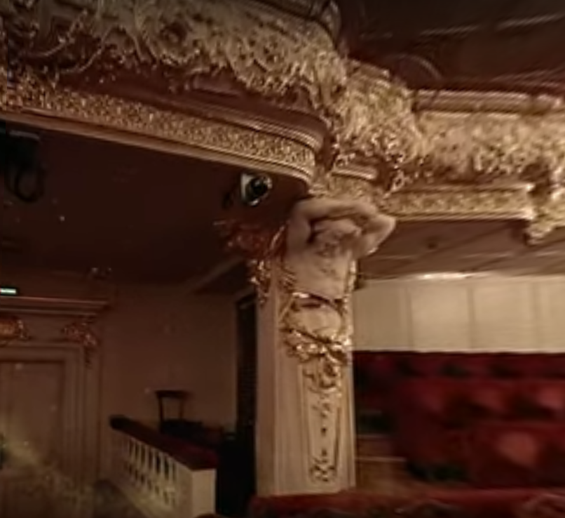 The space of the auditorium was significantly expended, which made it possible to make front lodges. The hall gained one more tier, and became six-tiered, accommodating almost 2300 spectators. On both sides, near the stage, there were letter boxes intended for the royal family, the ministry of the court and the theater directorate. The ceremonial Tsar’s box protruded a little into the hall and became its center, opposite the stage. The barrier of the Royal Lodge was supported by consoles in the form of bent atlantes. Even decades later everyone who entered this hall was amazed by the raspberry-gold splendor.