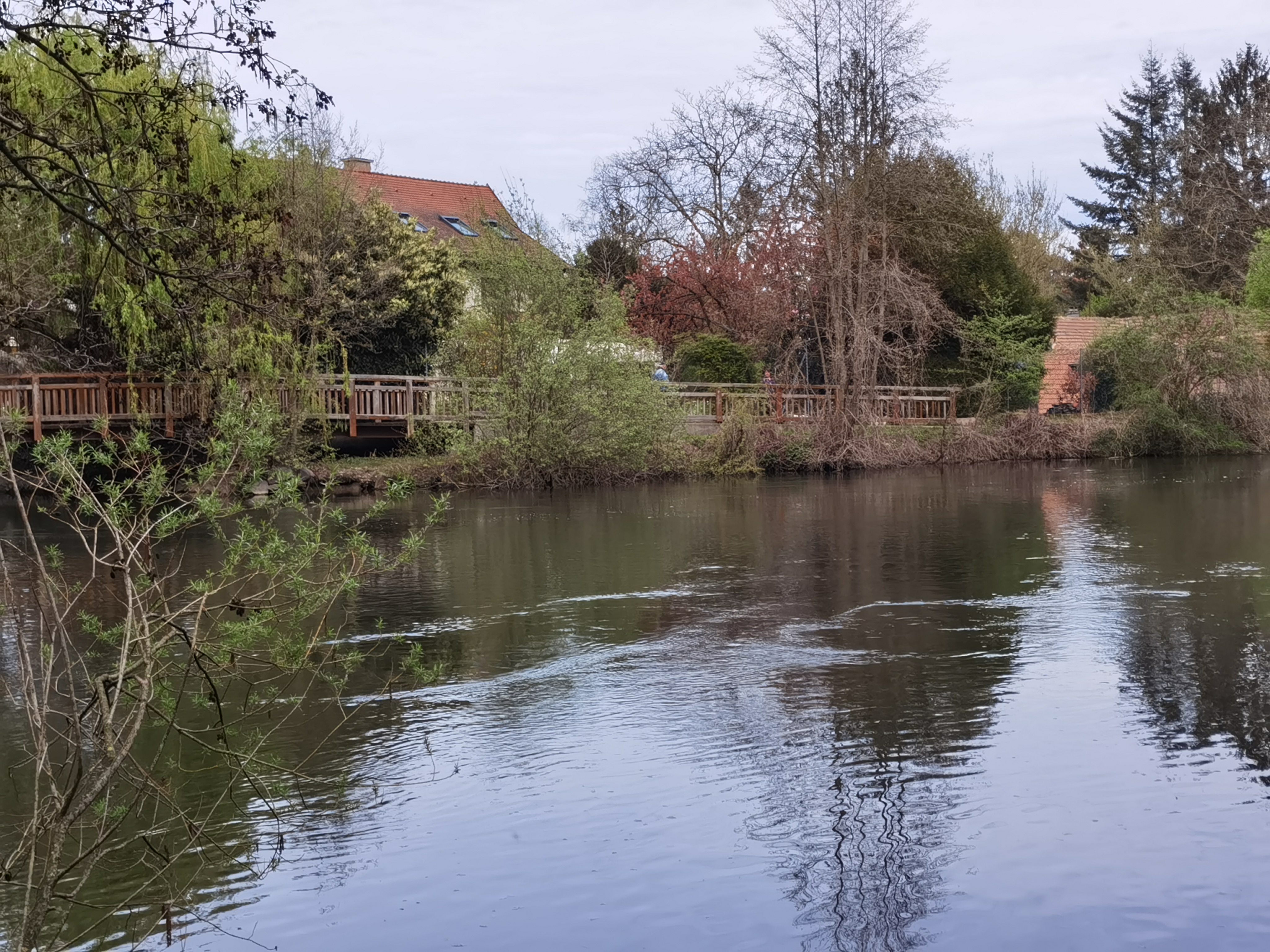 Au fur et à mesure que le regard du spectateur se promène vers l’arrière-plan, un promontoire se révèle, sur la rive surélevée duquel se dresse une vieille église.