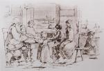 A clatter of bones and a creak of chains sounded like a laugh. It was midnight when the boat pulled in at Communipaw, and as the storm continued Vanderscamp, drenched to the skin, made quick time to the Wild Goose. As he entered, a sound of revelry overhead smote his ear, and, being no less astonished than in need of cordials, he hastened up-stairs and flung open the door. A table stood there, furnished with jugs and pipes and cans, and by light of candles that burned as blue as brimstone could be seen the three gallows-birds from Gibbet Island, with halters on their necks, clinking their tankards together and trolling forth a drinking-song.