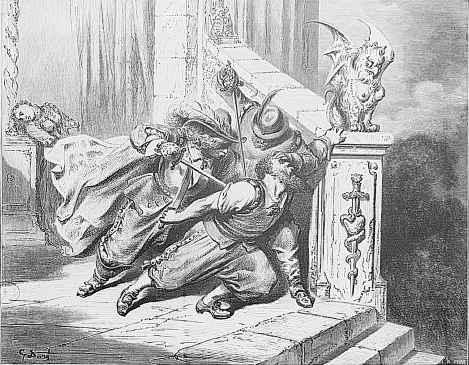 Ils lui passèrent leur épée au travers du corps et le laissèrent mort.