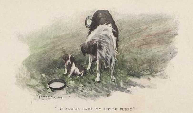 By and by came my little puppy, and then my cup was full, my happiness was perfect. It was the dearest little waddling thing, and so smooth and soft and velvety, and had such cunning little awkward paws, and such affectionate eyes, and such a sweet and innocent face; and it made me so proud to see how the children and their mother adored it, and fondled it, and exclaimed over every little wonderful thing it did. It did seem to me that life was just too lovely to—