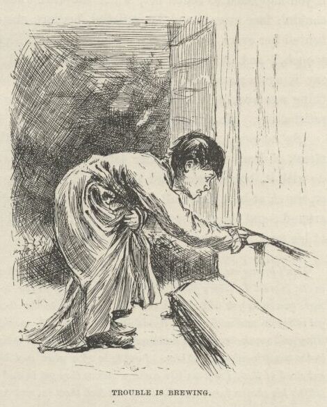 So Tom he wrote the nonnamous letter, and I smouched the yaller wench’s frock that night, and put it on, and shoved it under the front door, the way Tom told me to. It said: