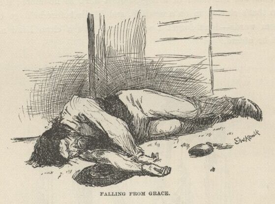 So they shook it, one after the other, all around, and cried. The judge’s wife she kissed it. Then the old man he signed a pledge—made his mark. The judge said it was the holiest time on record, or something like that. Then they tucked the old man into a beautiful room, which was the spare room, and in the night some time he got powerful thirsty and clumb out on to the porch-roof and slid down a stanchion and traded his new coat for a jug of forty-rod, and clumb back again and had a good old time; and towards daylight he crawled out again, drunk as a fiddler, and rolled off the porch and broke his left arm in two places, and was most froze to death when somebody found him after sun-up. And when they come to look at that spare room they had to take soundings before they could navigate it.