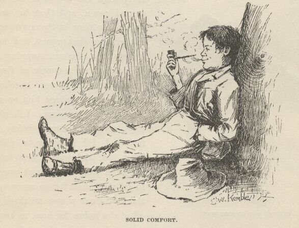 It was kind of lazy and jolly, laying off comfortable all day, smoking and fishing, and no books nor study. Two months or more run along, and my clothes got to be all rags and dirt, and I didn’t see how I’d ever got to like it so well at the widow’s, where you had to wash, and eat on a plate, and comb up, and go to bed and get up regular, and be forever bothering over a book, and have old Miss Watson pecking at you all the time. I didn’t want to go back no more. I had stopped cussing, because the widow didn’t like it; but now I took to it again because pap hadn’t no objections. It was pretty good times up in the woods there, take it all around.