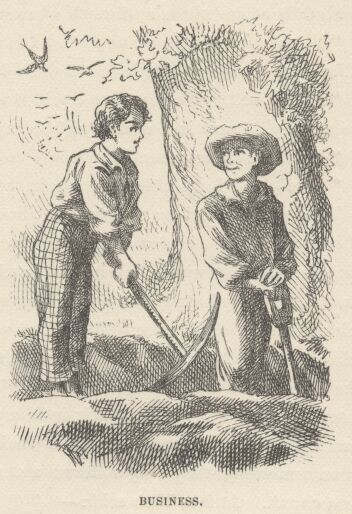Ils en choisirent donc un autre et recommencèrent. Le travail avançait lentement, mais sûrement. Au bout d’un moment, Huck s’appuya sur sa bêche et s’essuya le front du revers de sa manche.