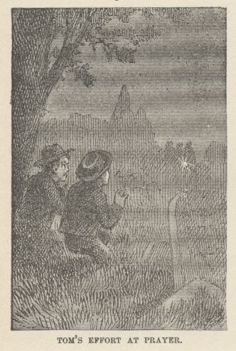 Ce soir-là, comme tous les soirs, tante Polly envoya Tom et Sid se coucher à neuf heures et demie. Les deux frères récitèrent leurs prières et Sid ne tarda pas à s’endormir. Tom n’avait nulle envie de l’imiter. Il bouillait d’impatience. À un moment, il eut l’impression que le jour allait se lever. La pendule le détrompa en sonnant dix coups. Il en fut désespéré. Il aurait aimé faire quelque chose, remuer, mais il avait peur de réveiller Sid et il dut rester immobile sur son lit environné de ténèbres.