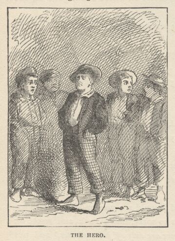 What a hero Tom was become, now! He did not go skipping and prancing, but moved with a dignified swagger as became a pirate who felt that the public eye was on him. And indeed it was; he tried not to seem to see the looks or hear the remarks as he passed along, but they were food and drink to him. Smaller boys than himself flocked at his heels, as proud to be seen with him, and tolerated by him, as if he had been the drummer at the head of a procession or the elephant leading a menagerie into town. Boys of his own size pretended not to know he had been away at all; but they were consuming with envy, nevertheless. They would have given anything to have that swarthy sun-tanned skin of his, and his glittering notoriety; and Tom would not have parted with either for a circus.