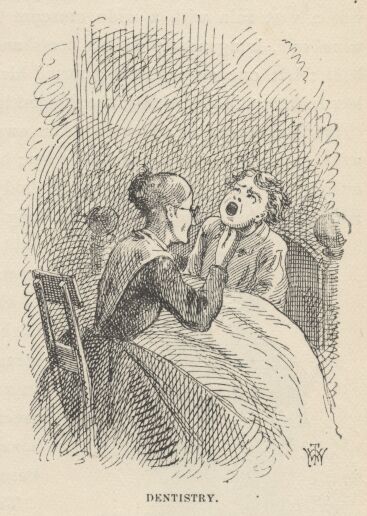 “There, there, now, don’t begin that groaning again. Open your mouth. Well—your tooth is loose, but you’re not going to die about that. Mary, get me a silk thread, and a chunk of fire out of the kitchen.”