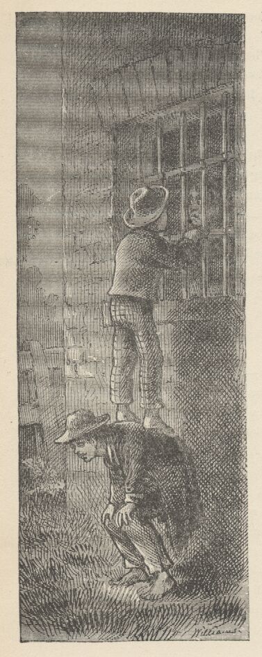 The boys had a long talk, but it brought them little comfort. As the twilight drew on, they found themselves hanging about the neighborhood of the little isolated jail, perhaps with an undefined hope that something would happen that might clear away their difficulties. But nothing happened; there seemed to be no angels or fairies interested in this luckless captive.