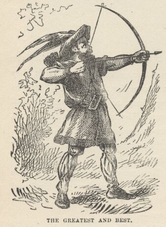 “I bet you he was, Huck. Oh, he was the noblest man that ever was. They ain’t any such men now, I can tell you. He could lick any man in England, with one hand tied behind him; and he could take his yew bow and plug a ten-cent piece every time, a mile and a half.”