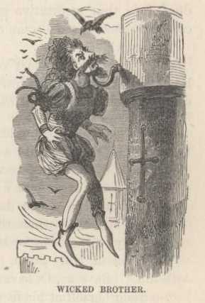 “Ha!-ha!-ha!” shouted the brutal Leonardo. “Priest, to thy work!” and he dragged the weeping dame from her refuge. “Say, once for all, will you be mine?–for by my halidome, that breath that uttereth thy refusal shall be thy last on earth!”