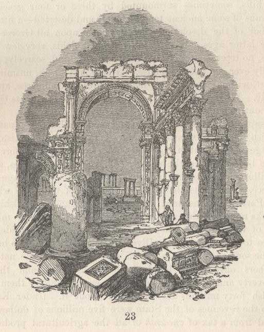 As we wandered thoughtfully down the marble-paved length of this stately temple, the scene about us was strangely impressive. Here and there, in lavish profusion, were gleaming white statues of men and women, propped against blocks of marble, some of them armless, some without legs, others headless—but all looking mournful in the moonlight, and startlingly human! They rose up and confronted the midnight intruder on every side—they stared at him with stony eyes from unlooked-for nooks and recesses; they peered at him over fragmentary heaps far down the desolate corridors; they barred his way in the midst of the broad forum, and solemnly pointed with handless arms the way from the sacred fane; and through the roofless temple the moon looked down, and banded the floor and darkened the scattered fragments and broken statues with the slanting shadows of the columns.