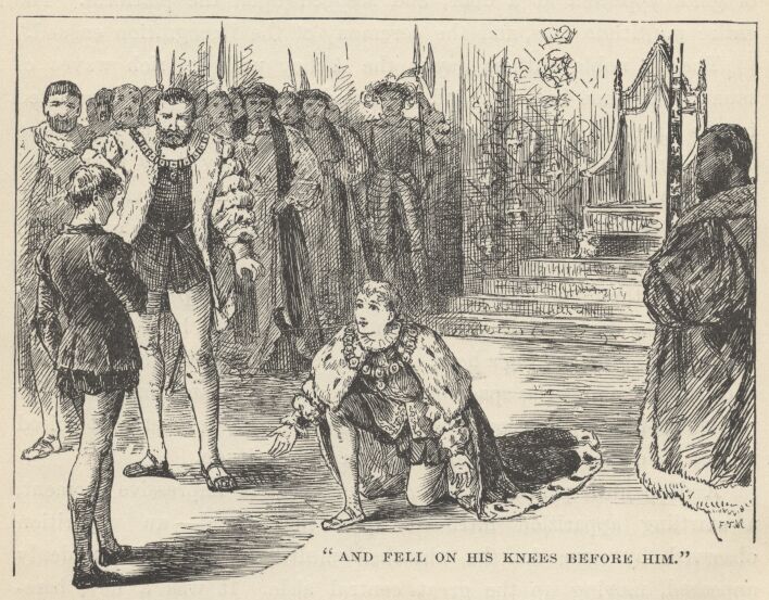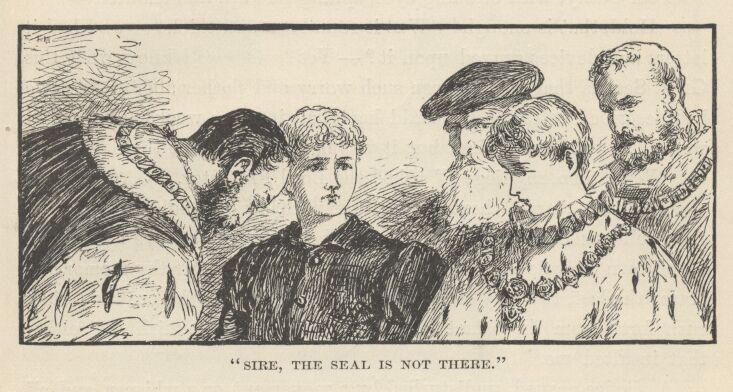 Under this rebuke, his Grace the Duke of Somerset retired a little from the front for the moment.  The King turned to Tom, and said kindly—“My poor boy, how was it that you could remember where I hid the Seal when I could not remember it myself?”