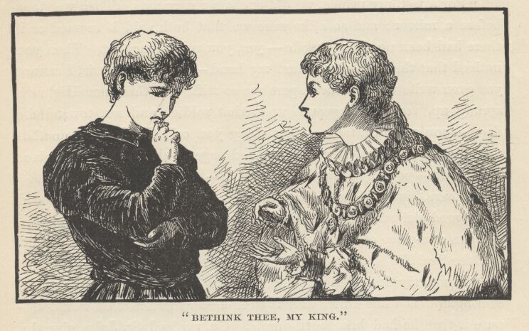 “I will not have it so.  But for him I had not got my crown again—none shall lay a hand upon him to harm him.  And as for thee, my good uncle, my Lord Protector, this conduct of thine is not grateful toward this poor lad, for I hear he hath made thee a duke”—the Protector blushed—“yet he was not a king; wherefore what is thy fine title worth now?  To-morrow you shall sue to me, through him, for its confirmation, else no duke, but a simple earl, shalt thou remain.”