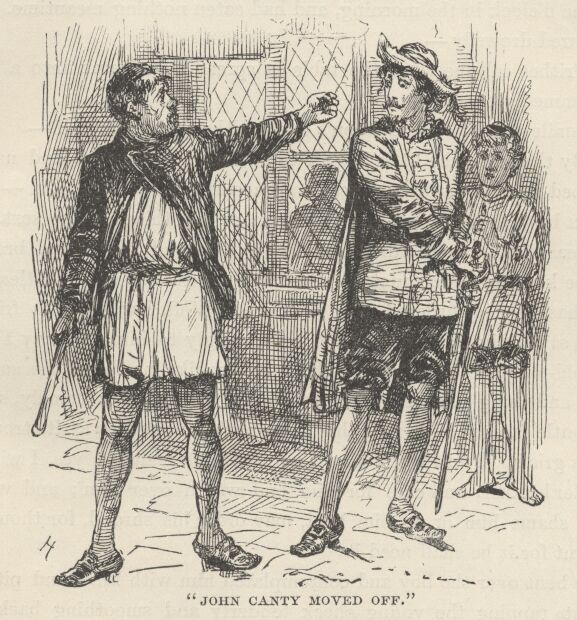 “So, thou’rt come at last! Thou’lt not escape again, I warrant thee; and if pounding thy bones to a pudding can teach thee somewhat, thou’lt not keep us waiting another time, mayhap,”—and John Canty put out his hand to seize the boy.