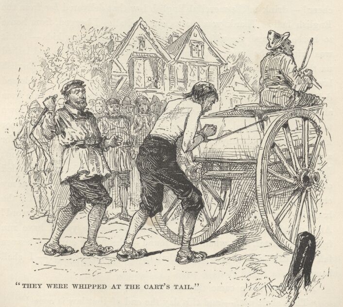 “Some—yes.  Particularly new comers—such as small husbandmen turned shiftless and hungry upon the world because their farms were taken from them to be changed to sheep ranges.  They begged, and were whipped at the cart’s tail, naked from the girdle up, till the blood ran; then set in the stocks to be pelted; they begged again, were whipped again, and deprived of an ear; they begged a third time—poor devils, what else could they do?—and were branded on the cheek with a red-hot iron, then sold for slaves; they ran away, were hunted down, and hanged.  ’Tis a brief tale, and quickly told.  Others of us have fared less hardly. Stand forth, Yokel, Burns, and Hodge—show your adornments!”