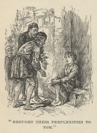 By-and-by Tom’s reading and dreaming about princely life wrought such a strong effect upon him that he began to act the prince, unconsciously. His speech and manners became curiously ceremonious and courtly, to the vast admiration and amusement of his intimates.  But Tom’s influence among these young people began to grow now, day by day; and in time he came to be looked up to, by them, with a sort of wondering awe, as a superior being.  He seemed to know so much! and he could do and say such marvellous things! and withal, he was so deep and wise!  Tom’s remarks, and Tom’s performances, were reported by the boys to their elders; and these, also, presently began to discuss Tom Canty, and to regard him as a most gifted and extraordinary creature.  Full-grown people brought their perplexities to Tom for solution, and were often astonished at the wit and wisdom of his decisions.  In fact he was become a hero to all who knew him except his own family—these, only, saw nothing in him.