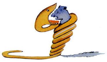 In the book it said: ‘Boa constrictors swallow their prey whole, without chewing it. Afterwards they are unable to move. Then they sleep for six months while they digest.’