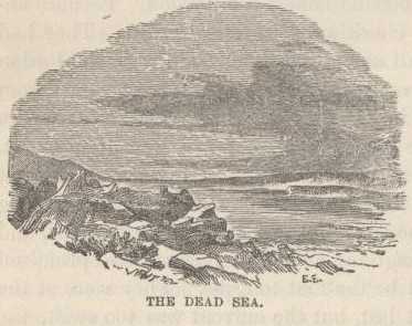 The Dead Sea is small. Its waters are very clear, and it has a pebbly bottom and is shallow for some distance out from the shores. It yields quantities of asphaltum; fragments of it lie all about its banks; this stuff gives the place something of an unpleasant smell.