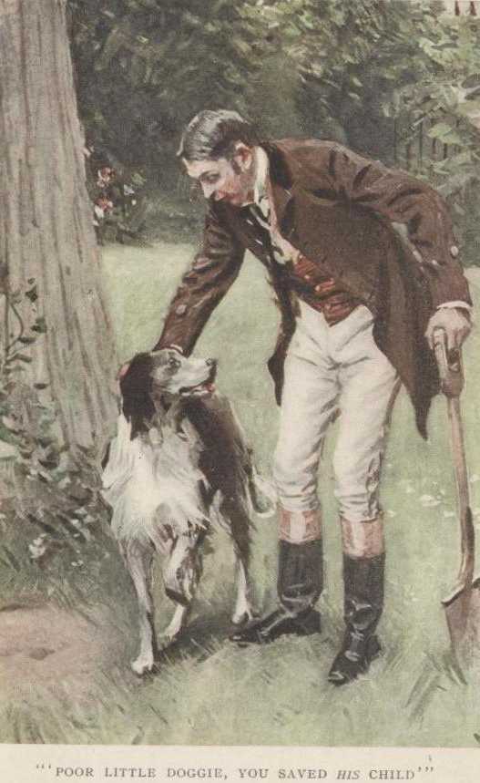 Но вот пришла зима. Однажды я стерегла в детской малютку, то есть лежала на кровати подле колыбели, в которой он спал. Колыбель стояла неподалеку от камина. Над ней спускался длинный полог из прозрачной ткани, через которую все видно. Нянька вышла из детской, мы с малюткой остались вдвоем и мирно спали. От горящего полена отскочила искра и попала на край полога. Должно быть, некоторое время все было тихо, но вдруг меня разбудил крик ребенка, и я увидела, что весь полог в огне, пламя взвивается до самого потолка. В ужасе, не успев сообразить, что делаю, я спрыгнула с кровати и через секунду была почти у самой двери. Но уже в следующую секунду в ушах моих прозвучали прощальные слова матери, и я тут же снова прыгнула на кровать. Просунув голову сквозь пламя, я стала тащить малютку, ухватившись зубами за поясок рубашечки, и продолжала тянуть, пока мы оба не упали на пол, окутанные облаками густого дыма. Тут я снова схватила крохотное кричащее существо, выбралась вместе с ним за дверь, в коридор, и изо всех сил продолжала тащить дальше, очень взволнованная, но счастливая и гордая своим поступком, как вдруг раздался голос хозяина: