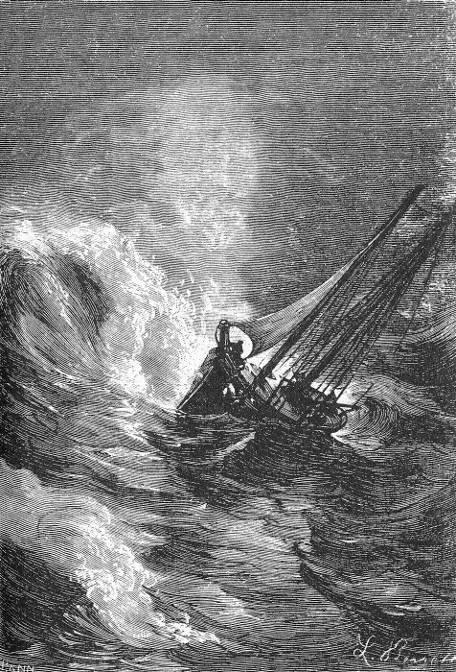 The pilot took his precautions in advance. He reefed all sail, the pole-masts were dispensed with; all hands went forward to the bows. A single triangular sail, of strong canvas, was hoisted as a storm-jib, so as to hold the wind from behind. Then they waited.