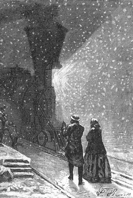 Towards two o’clock in the afternoon, while it was snowing hard, long whistles were heard approaching from the east. A great shadow, preceded by a wild light, slowly advanced, appearing still larger through the mist, which gave it a fantastic aspect. No train was expected from the east, neither had there been time for the succour asked for by telegraph to arrive; the train from Omaha to San Francisco was not due till the next day. The mystery was soon explained.