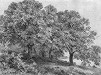 Группа лиственных деревьев и камни