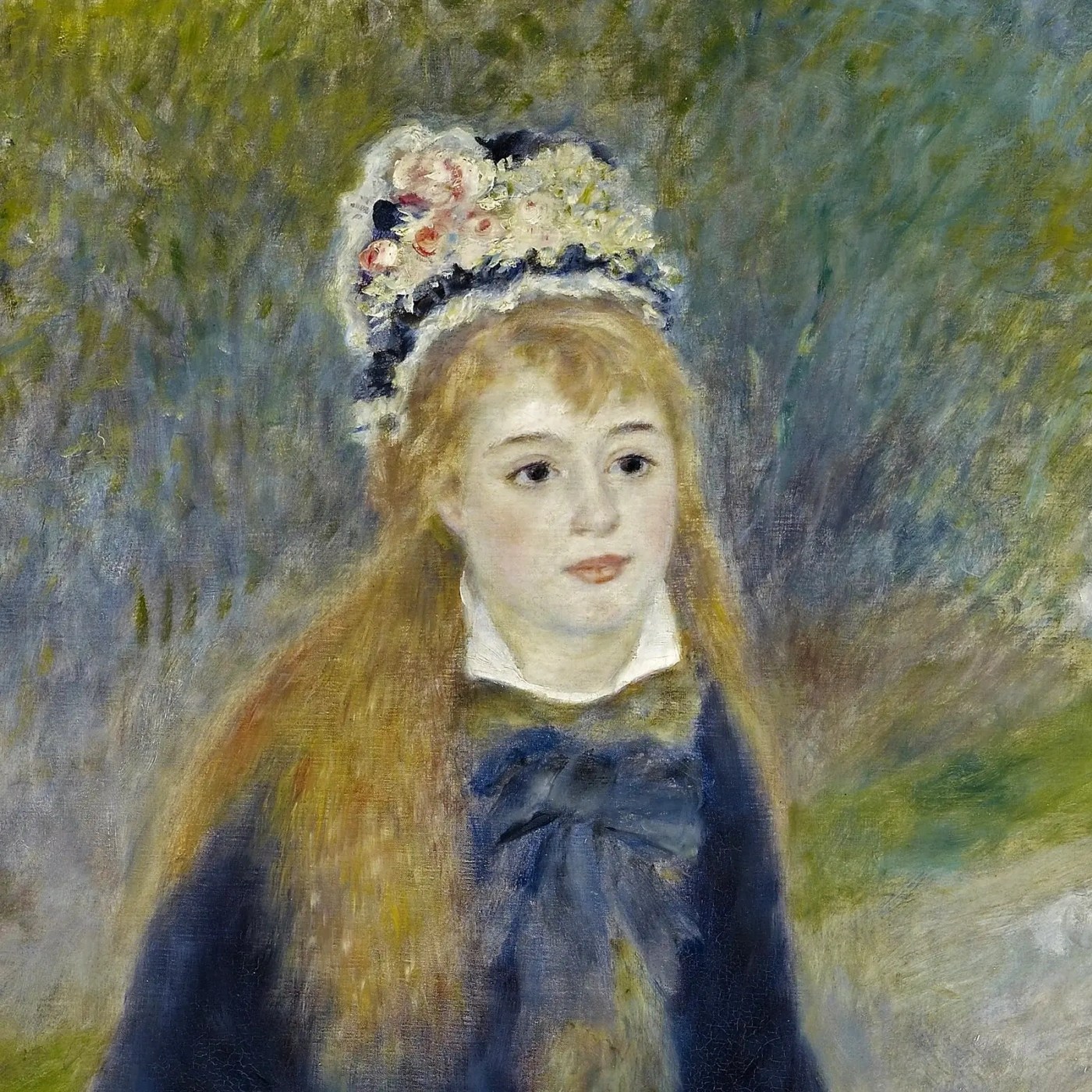 | Fille au chapeau. Etude pour le tableau “le Bal au moulin de la galette” | Girl in the hat. Sketch for the painting “Ball at the Moulin de la Galette” | Девушка в шляпке. Этюд к картине “Бал в Мулен де ла Галетт” |