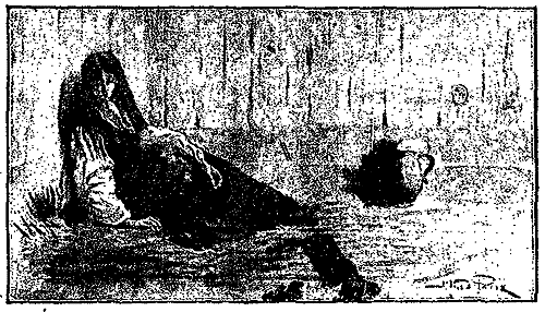 Je jetai un rapide coup d’oeil dans la chambre et faillis m’évanouir. Sur le plancher et dans un grossier vêtement de paysanne, Marie était assise, pâle, maigre, les cheveux épars. Devant elle se trouvait une cruche d’eau recouverte d’un morceau de pain. À ma vue elle frémit et poussa un cri perçant. Je ne saurais dire ce que j’éprouvai.