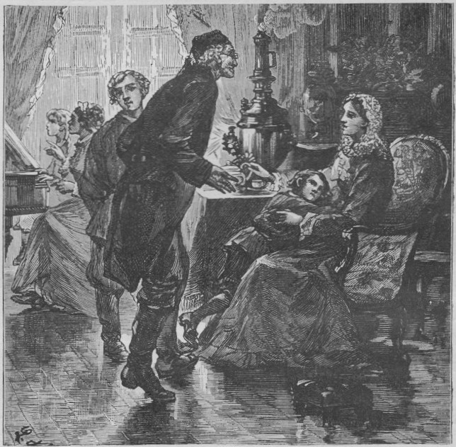 Elle revint à elle, comme quelqu’un qui sort d’un rêve, et, secouant sa chère petite tête, sans doute pour en chasser les pensées désagréables, elle tendit ses doigts à notre précepteur, et, pendant qu’il les baisait avec respect, effleura du bout de ses lèvres la tempe ridée du vieillard.