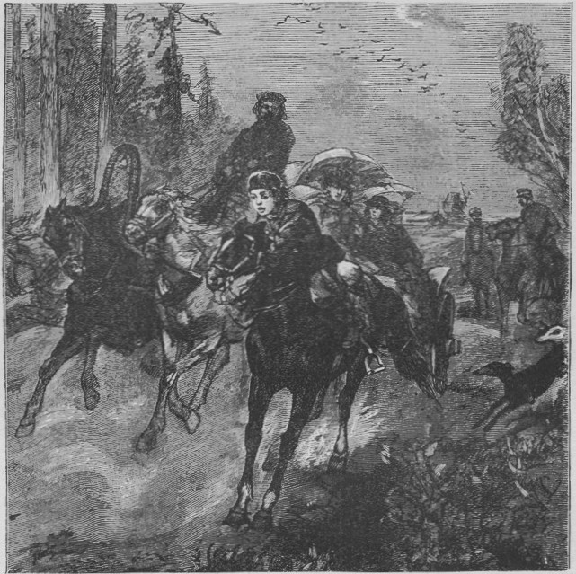 Notre départ, pour plaire à maman, avait été remis au lendemain. Nous repartîmes tous ensemble. Mon frère et moi nous suivions la ligneïka, désireux de nous surpasser dans l’art de l’équitation, et, par esprit de bravade, nous nous mîmes à faire caracoler nos montures autour de la ligneïka.