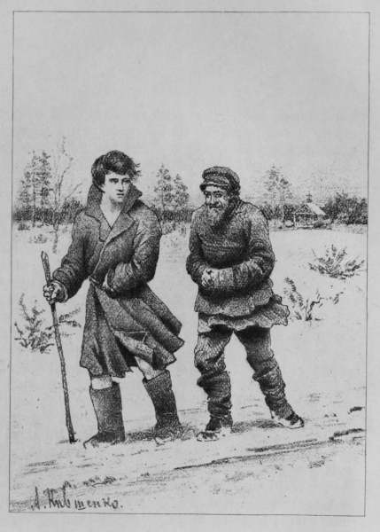 “Why don’t you speak? You can’t stay here through the winter. We must make for a living place. Here, take my stick, lean on it, if you are weak. Tramp along!”