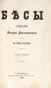 Воспроизводится по изданию: “Бесы. Роман Федора Достоевского. СПБ. 1873”, с исправлениями по журналу “Русский Вестник” 1871, т.т. XCI, ХСII, XCIV, XCV, XCVI и 1872, т. СП. (с сохранением орфографии). Редакция Б. Томашевского и К. Халабаева.